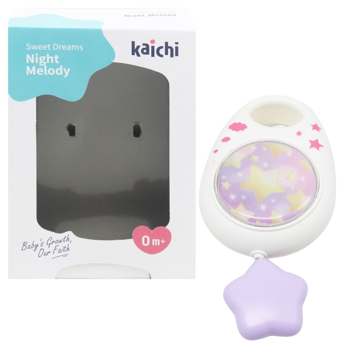 Пластиковый ночник - с милой картинкой и приятной мелодией. Размер - 13х9х3,5 см. Выполнен из качественного и прочного пластика. Для воспроизведения мелодии необходимо потянуть за звездочку, игрушка работает от заводного механизма. Играя мелодию на механизме крутится картинка со звездами. На задней панели игрушки размещены веревочки, с помощью которых ее можно подвесить на кроватке.