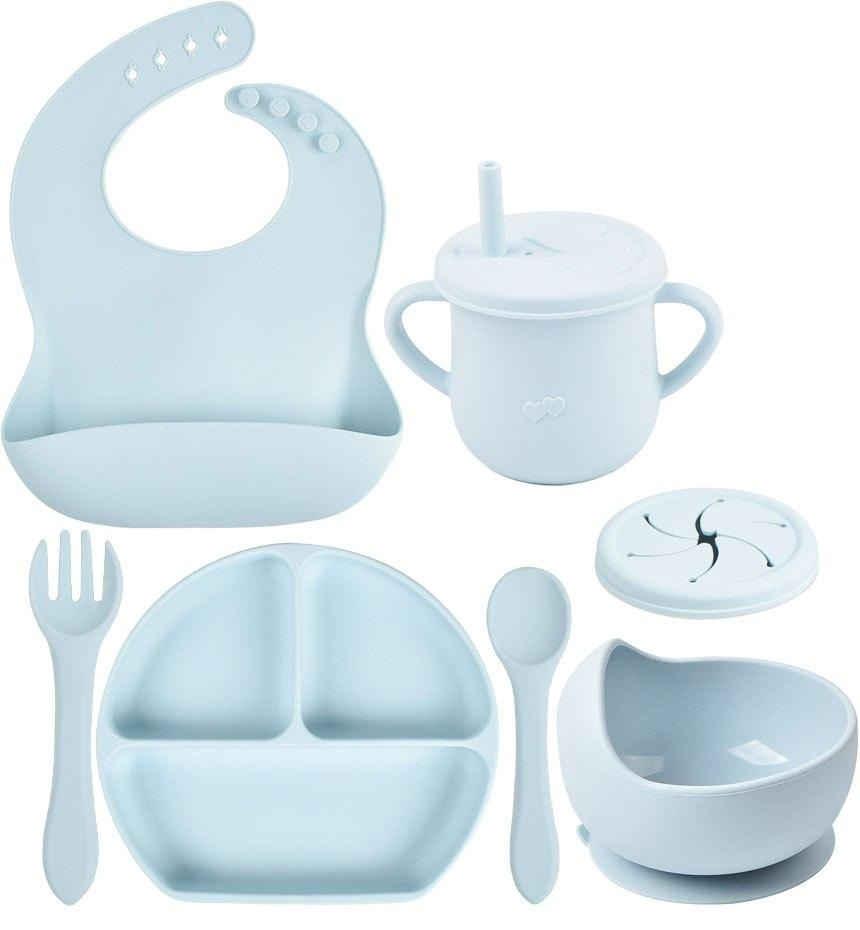 Набор силиконовой посуды, разработан и создан с учётом всех требований мам для кормления детей от 4х месяцев до 5 лет, состоит из 6 предметов: