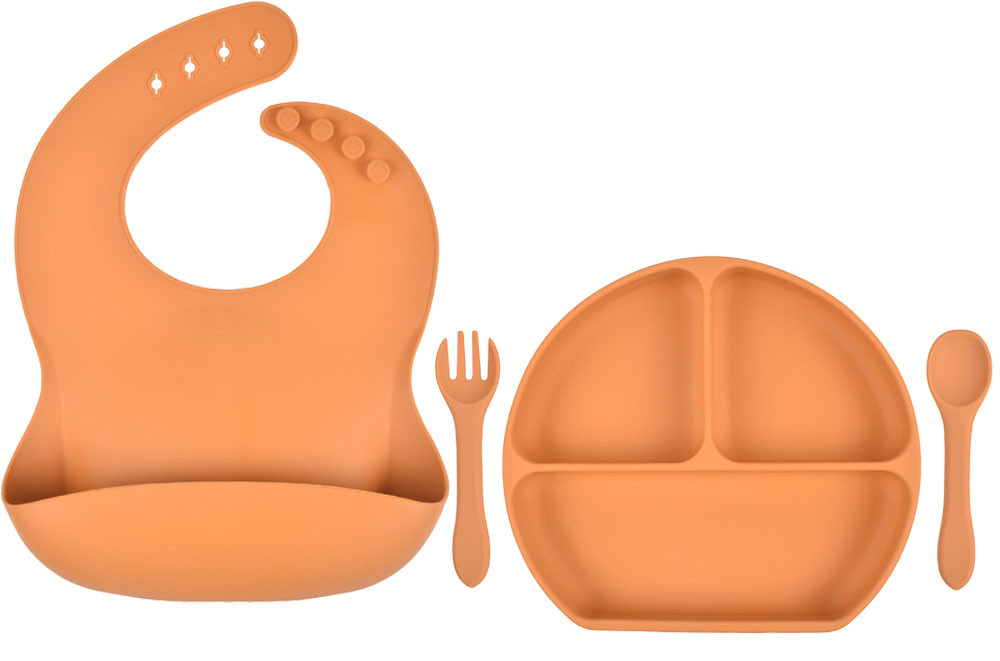 Набор трёх-секционная силиконовая тарелка ложка вилка 2Life Y4 3 шт Пирсиковый (vol-9764)