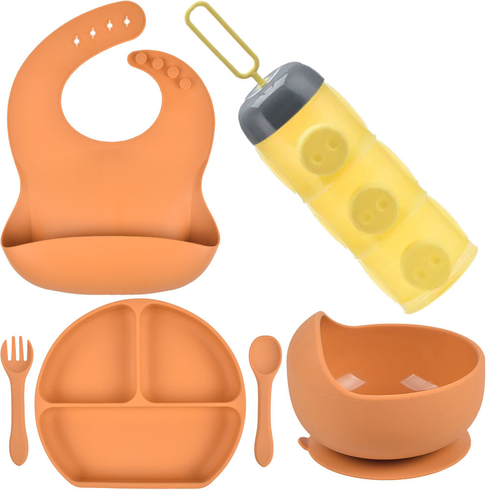 Набор силиконовой посуды, разработан и создан с учётом всех требований мам для кормления детей от 1-го месяца до 5 лет, состоит из 6 предметов:
