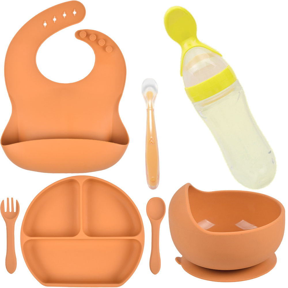 Набор силиконовой посуды, разработан и создан с учётом всех требований мам для кормления детей от 1-го месяца до 5 лет, состоит из 7 предметов: