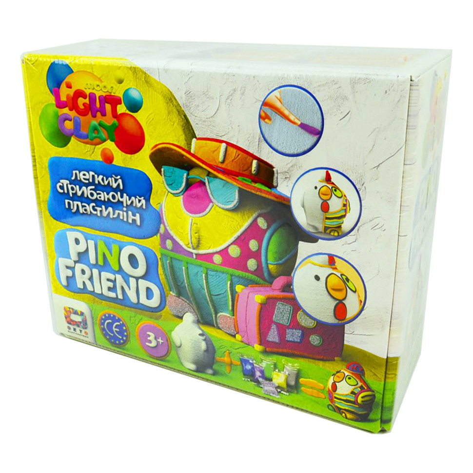 Опис Набор легкого прыгающего пластилина Pino Friend Коко TM Moon Light Clay 70056 с пенопластовой фигуркой