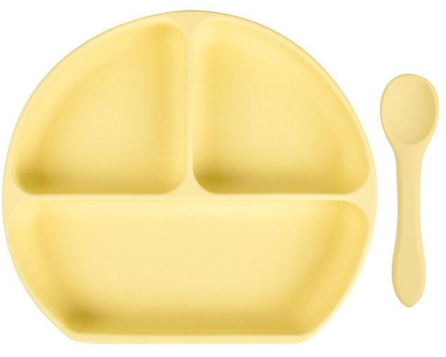 Набор силиконовая трех-секционная тарелка ложка 2Life Y11 2 шт Песочный (vol-9917)