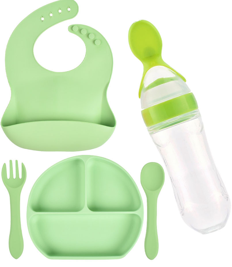 Набор силиконовая трех-секционная тарелка слюнявчик ложка вилка бутылка-ложка 2Life Y3 5 шт Зеленый (vol-9929)