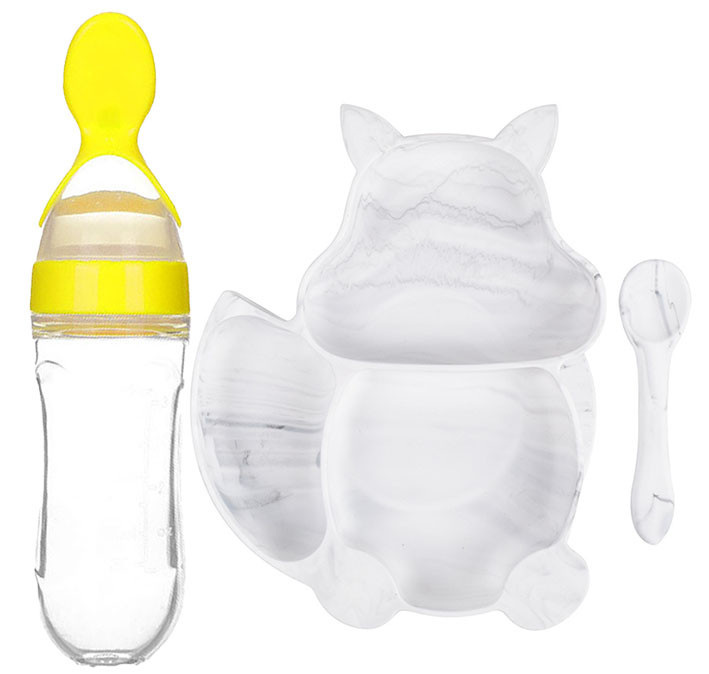 6.Силиконовая тарелка: секционная в форме белки снабжена присоской, что обеспечивает устойчивость посуды на столике для кормления или на любой другой гладкой и чистой поверхности.