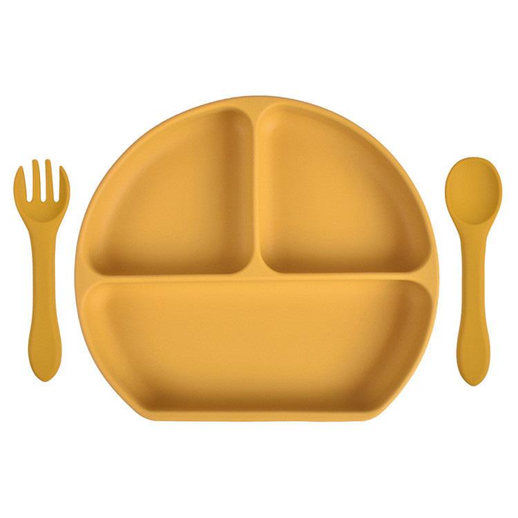 Набор трёх-секционная силиконовая тарелка ложка вилка 2Life Y25 3 шт Оранжевый (vol-9772)