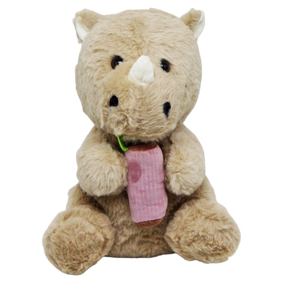 Милая мягкая игрушка в виде носорога, который держит в лапках бревнышко с листком. Глазки пластиковые. Игрушка плотно набита синтепоном. Размер - 28х16х20 см. Очень приятная на ощупь, выполнена из прочных и безопасных материалов. Будет прекрасным другом ребенку любого возраста.