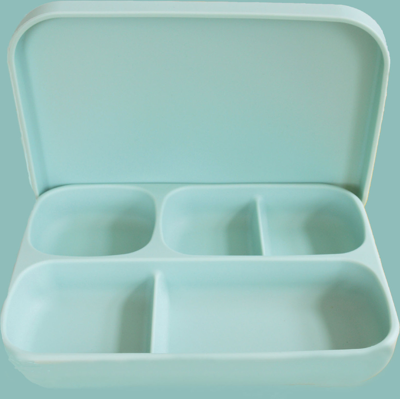Опис Детская пяти-секционная силиконовая тарелка с присоской с крышкой 2Life 700 мл Мятный (vol-10198)