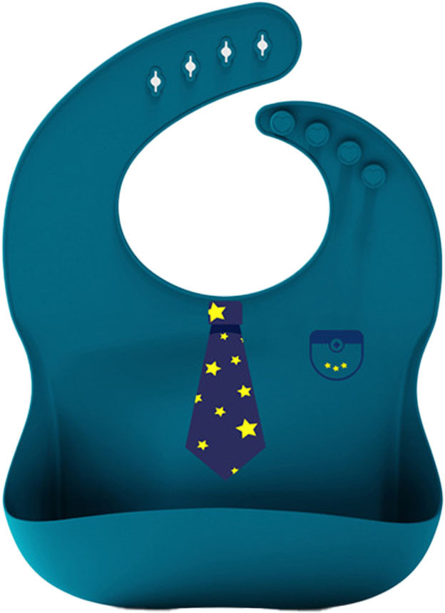 Опис Слюнявчик силиконовый детский с рисунком 2Life Галстук в звездочках и карманчик 30х24 см Синий (vol-10222)