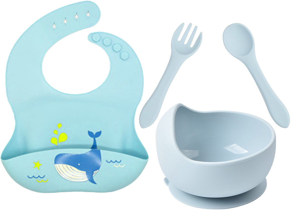 Набор силиконовой посуды, разработан и создан с учётом всех требований мам для кормления детей от 1го месяца состоит: Cиликоновая тарелка для первых блюд Вилка Ложка Слюнявчик Набор посуды из силикона обладает рядом преимуществ и достоинств перед другими видами детской посуды: 1.Посуда из пищевого силикона не бьется и не имеет запаха 2. Представленный набор посуды имеет нужные изгибы для удобства при эксплуатации 3.Посуда изготовлена из пищевого силикона соответсвует всем международным стандартам качества 4.Посуду можно стерилизовать и мыть в посудомоечной машине 5.Силиконовую посуду можно использовать в духовке, в пароварке или в СВЧ 6.Силиконовая тарелка: снабжена присоской, что обеспечивает устойчивость посуды на столике для кормления или на любой другой гладкой и чистой поверхности. 7.Вся посуда сохраняет свой первоначальный вид в течении всего срока эксплуатации. Тарелочка круглая силиконовая для первых блюд - это стильная и практичная круглая тарелка, специально разработанная для сервировки разнообразных супов, пюре и других первых блюд. Она изготовлена из прочного и безопасного материала, который легко моется и долговечен. Тарелка снабжена присоской на дне и не скользит по поверхности столика, - это особенно удобно когда малыш захочет учиться кушать самостоятельно, но также есть выступ, что бы легко отцепить липучку. В свою очередь, завышенный бортик тарелки поможет набрать еду маленькими, ещё не умелыми ручками. В комплекте с тарелкой идет удобная силиконовая ложка с вилкой, они обеспечивают комфортный и удобный захват пищи. Эта универсальная ложка с вилкой идеально подходит для детей разного возраста, обеспечивая мягкий и безопасный контакт с пищей. Удобные и аккуратные приборы с данного набора не повредят нежные ещё не окрепшими десна и первые зубы малыша даже при нажатии на столовые предметы. Дополнительно в комплект входит стильный слюнявчик из мягкого силикона. Он предназначен для защиты одежды от попадания пищи и жидкости, что делает его идеальным аксессуаром для кормления малышей или для использования во время приема пищи в дороге. Тарелка для первых блюд с силиконовой ложкой с вилкой и слюнявчиком обеспечит комфорт, стиль и функциональность при ежедневных приемах пищи. Наша рекомендация: перед использованием промыть теплой водой с добавлением нейтрального моющего средства. О разнице в цвете: Все товары сделаны на натуральных фотографиях. Из-за различных мониторов и освещения при съемке, факторов окружающей среды и т. д., есть небольшая разница в цвете, которая объективна и ее нельзя избежать! Хроматическая аберрация не является проблемой качества.