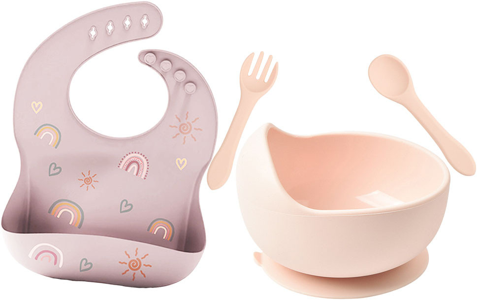 Набор силиконовой посуды, разработан и создан с учётом всех требований мам для кормления детей от 1-го месяца до 5 лет, состоит из 4 предметов: Cиликоновая тарелка для первых блюд Вилка Ложка Слнявчик Набор посуды из силикона обладает рядом преимуществ и достоинств перед другими видами детской посуды: 1.Посуда из пищевого силикона не бьется и не имеет запаха 2. Представленный набор посуды имеет нужные изгибы для удобства при эксплуатации 3.Посуда изготовлена из пищевого силикона соответствует всем международным стандартам качества 4.Посуду можно стерилизовать и мыть в посудомоечной машине 5.Силиконовую посуду можно использовать в духовке, в пароварке или в СВЧ 6.Силиконовая тарелка: снабжена присоской, что обеспечивает устойчивость посуды на столике для кормления или на любой другой гладкой и чистой поверхности. 7.Вся посуда сохраняет свой первоначальный вид в течении всего срока эксплуатации. Тарелочка круглая силиконовая на присоске ее достаточно, как для начала первого прикорма так и для последующего кормления ребёнка. Тарелка снабжена присоской на дне и не скользит по поверхности столика, - это особенно удобно когда малыш захочет учиться кушать самостоятельно, но также есть выступ, что бы легко отцепить липучку. В свою очередь, завышенный бортик тарелки поможет набрать еду маленькими, ещё не умелыми ручками. Набор столовых приборов из пищевого силикона это идеальные: вилочка и ложечка для начала прикорма. Удобные и аккуратные ложечка и вилочка с данного набора не повредят нежные ещё не окрепшими десна и первые зубики малыша даже при нажатии на столовые предметы. Особая форма и небольшой объём необходимы для плавного перехода малыша от груди к ложке. Слюнявчик - незаменимая вещь при кормлении малыша. Максимум комфорта для ребёнка и минимум уборки для родителей. Компактный и удобный в использовании для дома, детского сада, поездок, прогулок. Не требует стирки. Нагрудник достаточно протереть тряпочкой или салфеткой. Кармашек для улавливания пролитой еды отлично защищает одежду от загрязнений. Наша рекомендация: перед использованием промыть теплой водой с добавлением нейтрального моющего средства. О разнице в цвете: Все товары сделаны на натуральных фотографиях. Из-за различных мониторов и освещения при съемке, факторов окружающей среды и т. д., есть небольшая разница в цвете, которая объективна и ее нельзя избежать! Хроматическая аберрация не является проблемой качества.