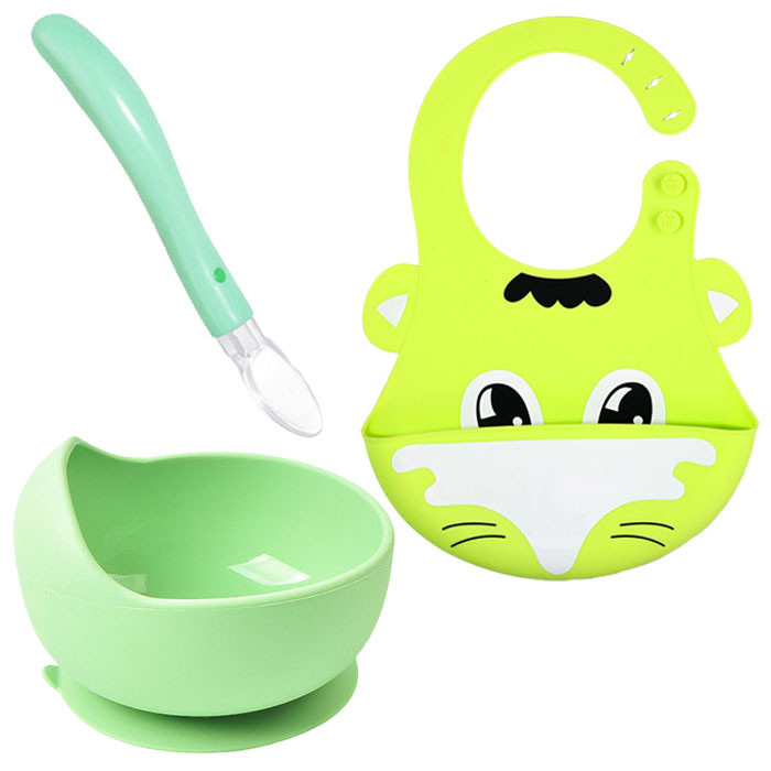 Набор силиконовой посуды 2Life 3D Котик 3 предмета Зеленый (vol-10406)