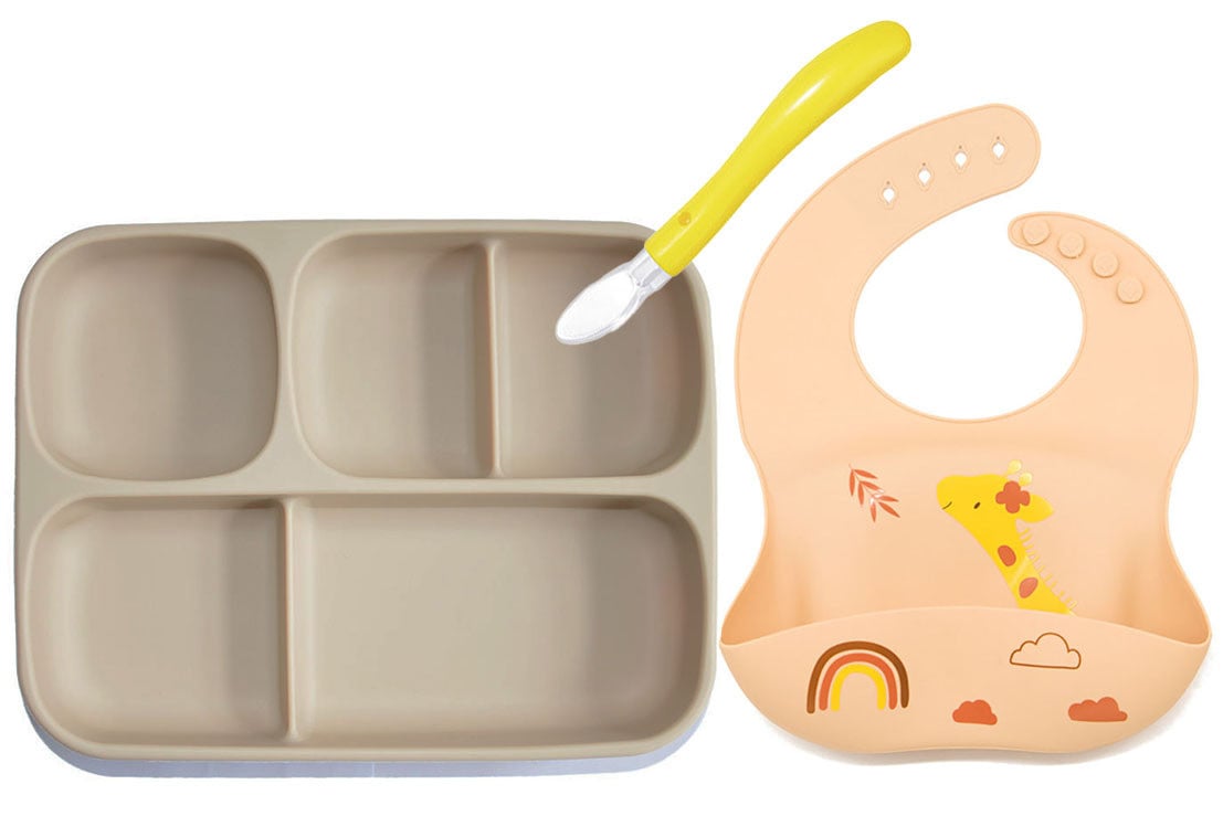 Набор силиконовой посуды 2Life Жираф 3 предмета Бежевый (vol-10467)