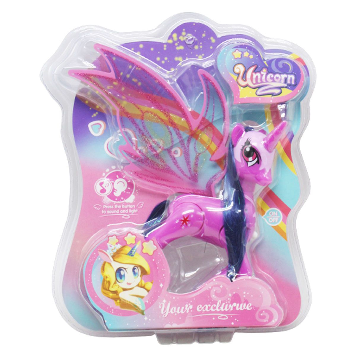 Милая лошадка-пони будет отличным подарком. У лошадки длинная, шелковистая грива и хвост, красивые прозрачные крылья, а так же рог, как у единорога. У игрушки есть световые и звуковые эффекты (активируються при нажатии кнопки на груди. Размер лошадки (без крыльев) - 15х12х4 см. Выполнена из прочного пластика. Для детей от 3-х лет. 214326 148865 LY20023 MIC