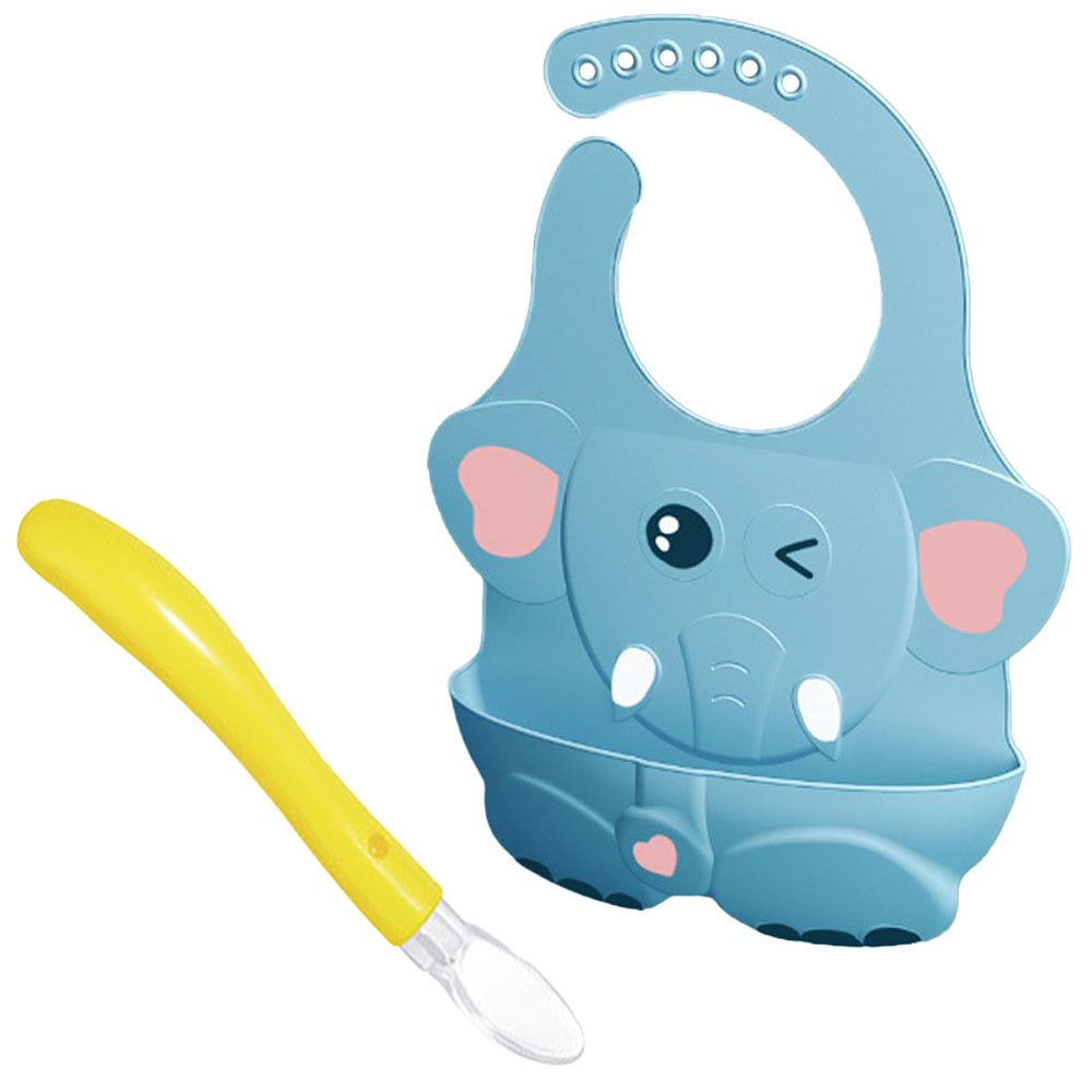 Слюнявчик 2Life Слоник 4Д Голубой и силиконовая ложка Желтый (vol-10534)