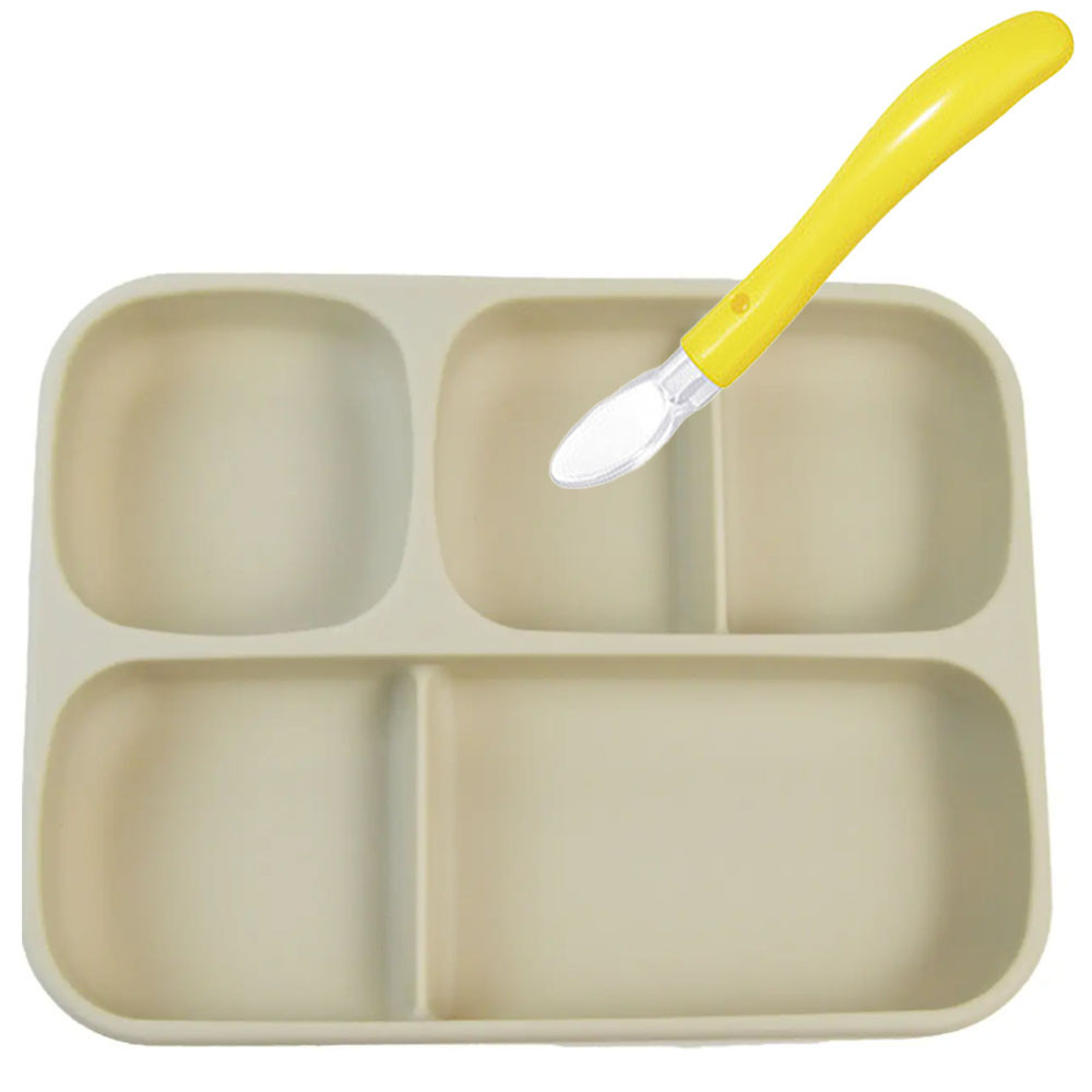 Набор силиконовой посуды, разработан и создан с учётом всех требований мам для кормления детей от 1го месяца состоит: Cиликоновая пяти-секционная тарелка Ложка Набор посуды из силикона обладает рядом преимуществ и достоинств перед другими видами детской посуды: 1.Посуда из пищевого силикона не бьется и не имеет запаха 2. Представленный набор посуды имеет нужные изгибы для удобства при эксплуатации 3.Посуда изготовлена из пищевого силикона соответсвует всем международным стандартам качества 4.Посуду можно стерилизовать и мыть в посудомоечной машине 5.Силиконовую посуду можно использовать в духовке, в пароварке или в СВЧ 6.Силиконовая тарелка: снабжена присоской, что обеспечивает устойчивость посуды на столике для кормления или на любой другой гладкой и чистой поверхности. 7.Вся посуда сохраняет свой первоначальный вид в течении всего срока эксплуатации. Секционная силиконовая тарелка с пяти секций на присоске. В ней можно готовить пищу для ребёнка, совмещать разные виды продуктов по консистенции и по температуре. Тарелка снабжена присоской на дне и не скользит по поверхности столика, - это особенно удобно когда малыш захочет учиться кушать самостоятельно, но также есть выступ, что бы легко отцепить липучку. Тарелка снабжена присоской на дне и не скользит по поверхности столика, - это особенно удобно когда малыш захочет учиться кушать самостоятельно, но также есть выступ, что бы легко отцепить липучку. В комплекте с тарелкой идет удобная силиконовая ложка, которая обеспечивает комфортный и удобный захват пищи. Эта универсальная ложка идеально подходят для детей разного возраста, обеспечивая мягкий и безопасный контакт с пищей. Ложка не повредит нежные ещё не окрепшими десна и первые зубы малыша даже при нажатии на столовые предметы. Наша рекомендация: перед использованием промыть теплой водой с добавлением нейтрального моющего средства. О разнице в цвете: Все товары сделаны на натуральных фотографиях. Из-за различных мониторов и освещения при съемке, факторов окружающей среды и т. д., есть небольшая разница в цвете, которая объективна и ее нельзя избежать! Хроматическая аберрация не является проблемой качества.