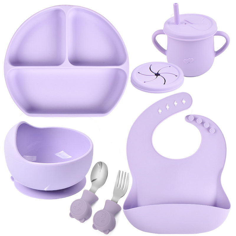 Набор силиконовой посуды, разработан и создан с учётом всех требований мам для кормления детей от 4х месяцев до 5 лет, состоит из предметов: