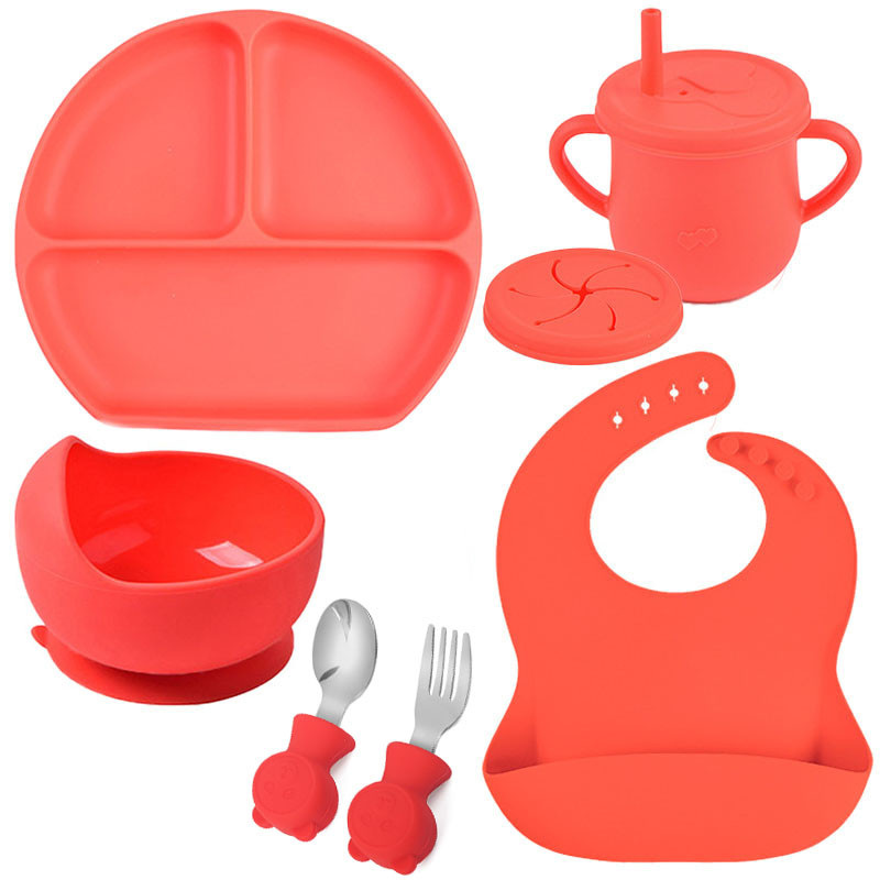 Набор посуды из силикона обладает рядом преимуществ и достоинств перед другими видами детской посуды: