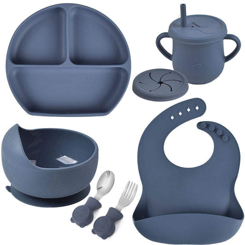 Набор силиконовой посуды, разработан и создан с учётом всех требований мам для кормления детей от 4х месяцев до 5 лет, состоит из предметов: