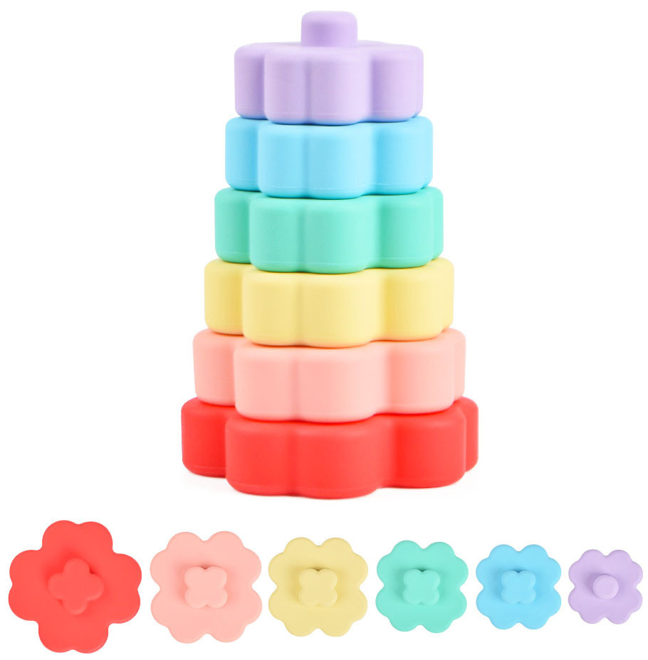 Тактильная пирамидка прорезыватель игрушка для развития моторики 2Life Яркие цветочки vol-11225