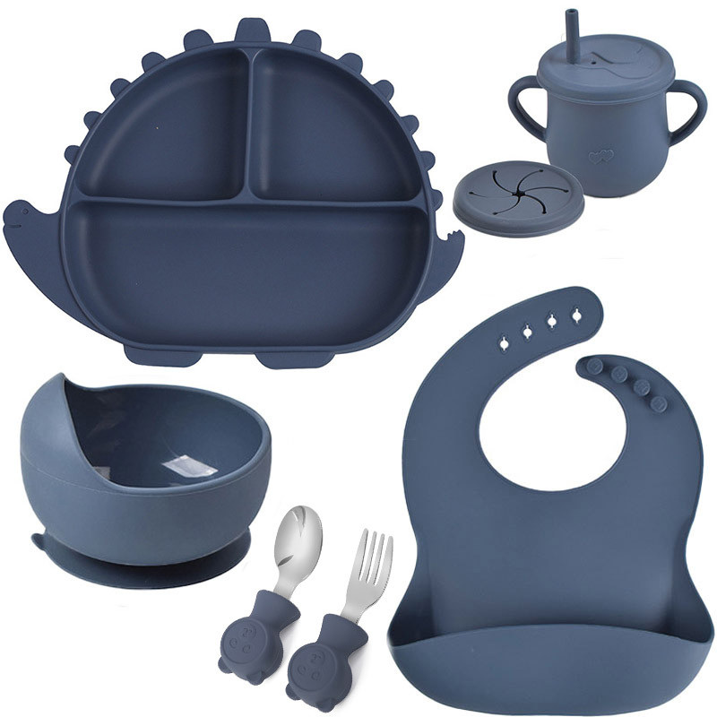 Набор силиконовой посуды, разработан и создан с учётом всех требований мам для кормления детей, состоит из предметов: 1. Трёх-секционная силиконовая тарелка 2. Круглая тарелка на присоске для первых блюд 3. Силиконовый слюнявчик с регулируемой застежкой и карманом 4. Вилка 5. Ложка 6. Поильник-непроливайка Набор посуды из силикона обладает рядом преимуществ и достоинств перед другими видами детской посуды: 1.Посуда из пищевого силикона не бьется и не имеет запаха 2. Представленный набор посуды имеет нужные изгибы для удобства при эксплуатации 3.Посуда изготовлена из пищевого силикона и соответсвует всем международным стандартам качества 4.Посуду можно стерилизовать и мыть в посудомоечной машине 5.Силиконовую посуду можно использовать в духовке, в пароварке или в СВЧ 6.Силиконовые тарелки: секционная и круглая снабжены присосками, что обеспечивает устойчивость посуды на столике для кормления или на любой другой гладкой и чистой поверхности. 7.Вся посуда сохраняет свой первоначальный вид в течении всего срока эксплуатации. Секционная силиконовая тарелка с трех секций на присоске. В ней можно готовить пищу для ребёнка, совмещать разные виды продуктов по консистенции и по температуре. Тарелка снабжена присоской на дне и не скользит по поверхности столика - это особенно удобно когда малыш захочет учиться кушать самостоятельно, но также есть выступ, что бы легко отцепить липучку. Тарелочка круглая силиконовая на присоске, ее достаточно, как для начала первого прикорма так и для последующего кормления ребёнка. Слюнявчик - незаменимая вещь при кормлении малыша. Максимум комфорта для ребёнка и минимум уборки для мамы. Компактный и удобный в использовании для дома, детского сада, поездок, прогулок. Не требует стирки. Нагрудник достаточно протереть тряпочкой или салфеткой. Кармашек для улавливания пролитой еды отлично защищает одежду от загрязнений. Набор столовых приборов - это идеальные решение для начала прикорма. Металлические элементы обеспечивают прочность и долговечность, а силиконовые ручки делают их удобными в использовании. Этот набор приборов идеально подходит для ежедневного использования и обеспечивает надежное и удобное взаимодействие с пищей. Силиконовый поильник для детей 3в1 чашка силиконовая с ручками, снечница, поильник с трубочкой. Данный поильник можно видоизменить благодаря специальным крышкам: это может быть Обучающий поильник, затем когда малыш подрастёт, он может быть Снек-стаканчиком - это как непроливайка для напитков, только непросыпайка для печенек, ягод, фруктов и многого другого. А когда малыш научится пить и кушать самостоятельно поильник станет Универсальной чашкой для разных напитков. Изделие изготовлено из 100% пищевого силикона и пригодно, как для горячих так и для холодных напитков. Наша рекомендация: перед использованием промыть теплой водой с добавлением нейтрального моющего средства. О разнице в цвете: Все товары сделаны на натуральных фотографиях. Из-за различных мониторов и освещения при съемке, факторов окружающей среды и т. д., есть небольшая разница в цвете, которая объективна и ее нельзя избежать! Хроматическая аберрация не является проблемой качества.