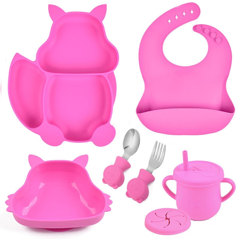 Набор детской посуды на присоске 2Life Белка Y8 из 7 предметов Розовый (v-11315)