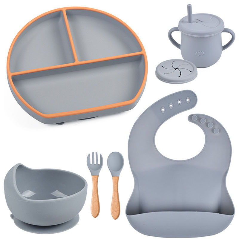 Набор детской силиконовой посуды 2Life Y18 из 7 предметов с деревянными приборами Серый (v-11364)