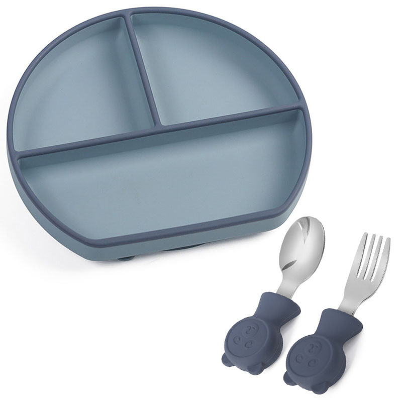 Силиконовая трехсекционная тарелка 2Life Y21 и металлические приборы Y10 Темно-голубой с синим (v-11547)