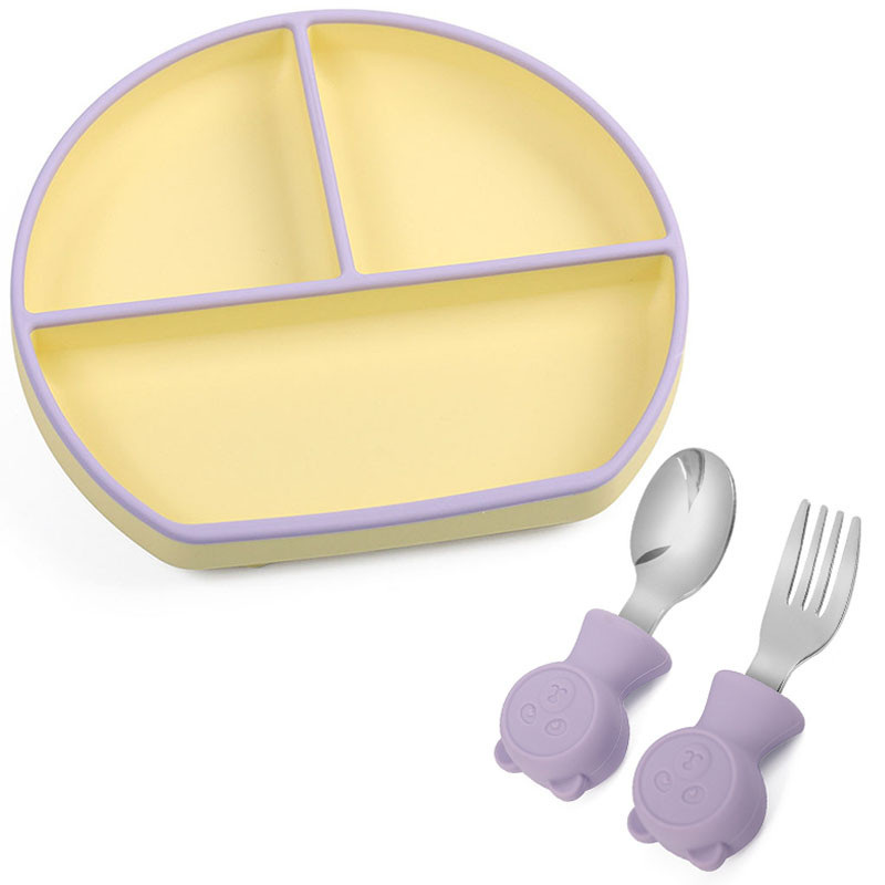 Силиконовая трехсекционная тарелка 2Life Y11 и металлические приборы Y2 Желтый с фиолетовым (v-11545)