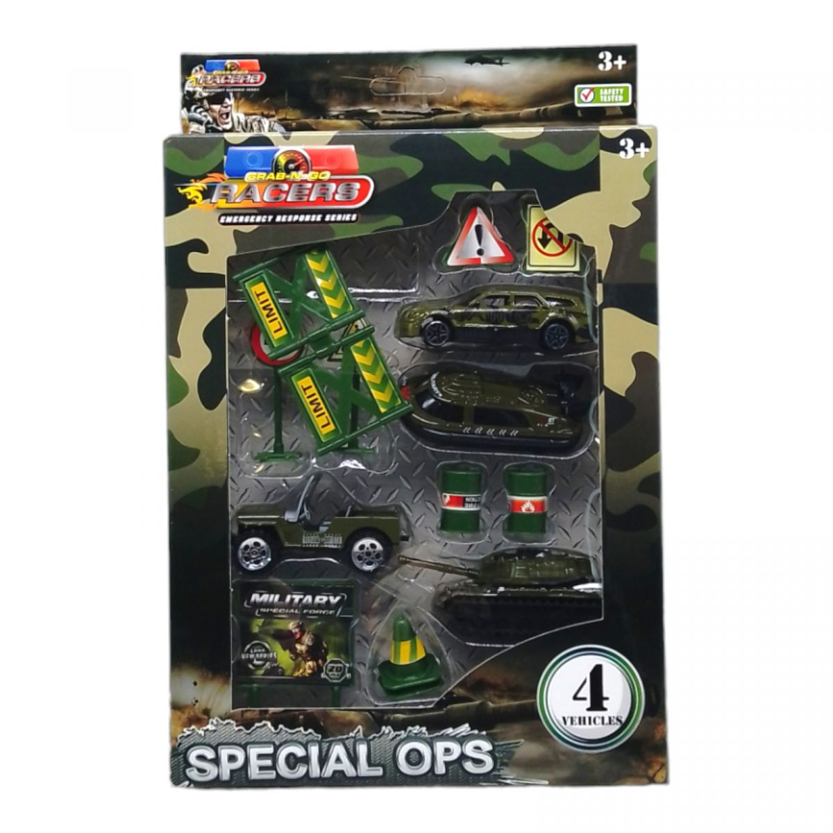 Набор военных машин. Изготовлены из металла, но также могут включать в себя пластиковые элементы. Также в комплект входят различные аксессуары. Аксессуары изготовлены полностью из пластика. Размер машинок - 7 - 9 см. Масштаб - 1:64. Подойдет для детей от 3-х лет.