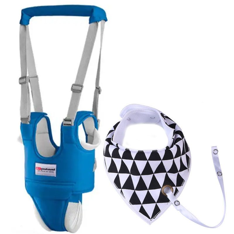 Набор 2Life детские вожжи-ходунки Синие и слюнявчик-нагрудник с держателем для соски Черно-белый (v-11698)