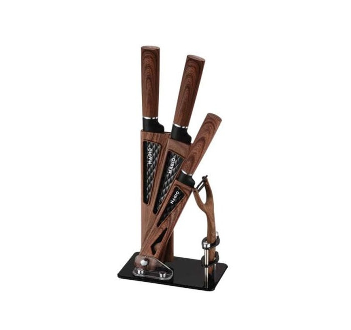 - Підставка: Зручна підставка для зберігання всіх ножів у безпечному та легкодоступному місці.
