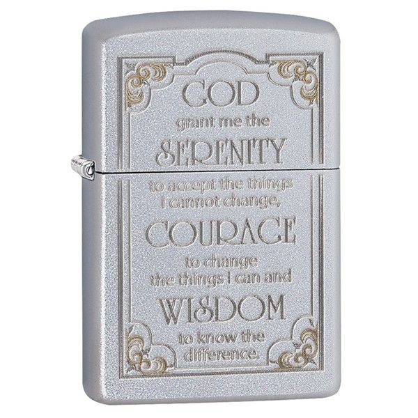 Широкая бензиновая зажигалка Зиппо SERENITY PRAYER (Безмятежная Молитва) со словами молитвы на лицевой поверхности зажигалки, которые выгравированы с использованием запатентованных технологий. Данная зажигалка, впрочем, как и все остальные зажигалки Zippo, отличается высоким качеством. Все зажигалки Zippo в продажу поступают незаправленными. Топливо можно купить отдельно. Есть возможность покупки с подарочной коробкой (куда можно положить запасной кремний и топливо).
