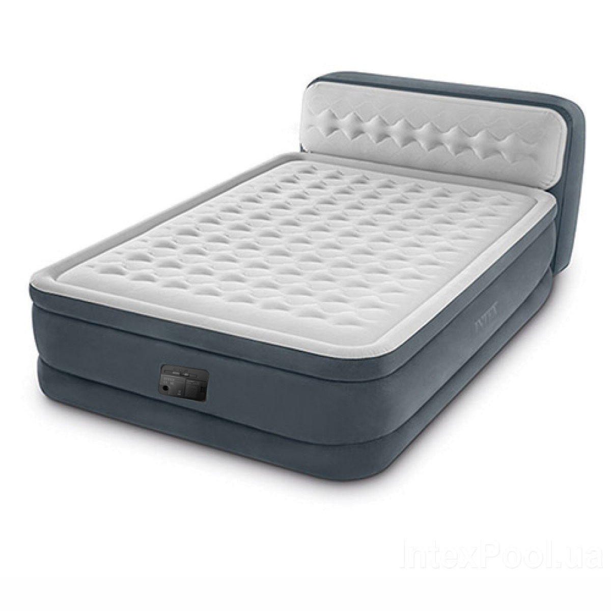 Надувная кровать Intex 64414 152 х 203 х 46 см встроенный электронасос Двухспальная Серый