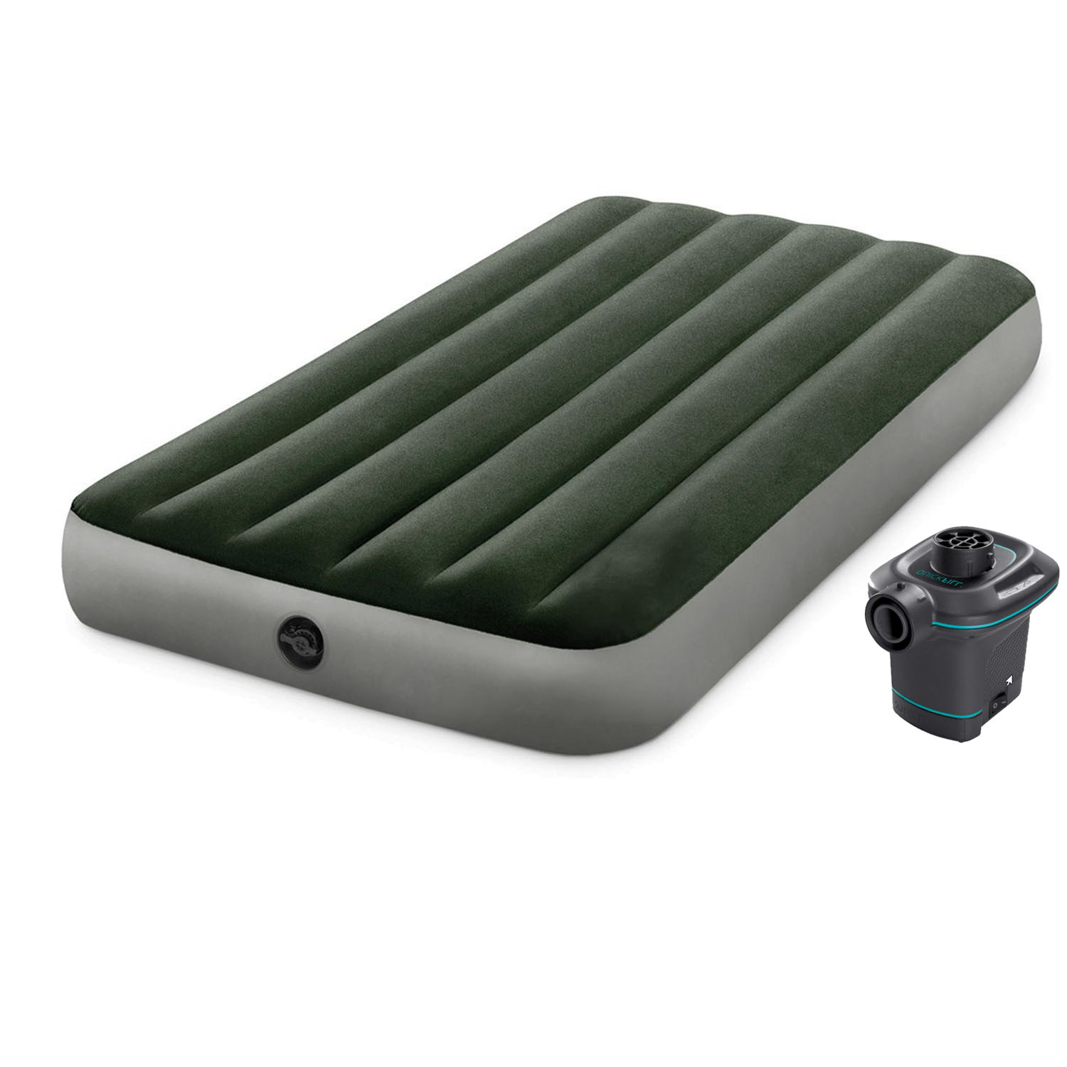 Надувной матрас Intex 64777 (матрас 64107 электронасос 66640) Одноместный 99 x 191 x 25 см Зеленый