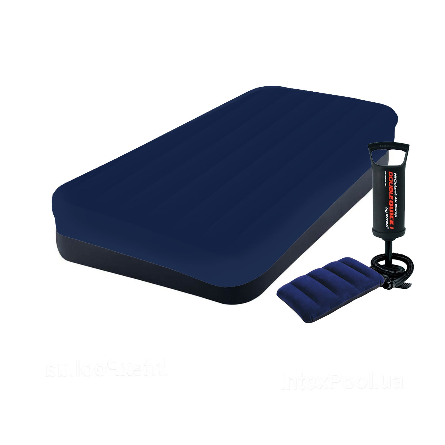 Технические характеристики товара "Надувной матрас Intex 64141-3, 99 x 191 x 25 см, с наматрасником-чехом, подушкой и ручным насосом. Одноместный"
