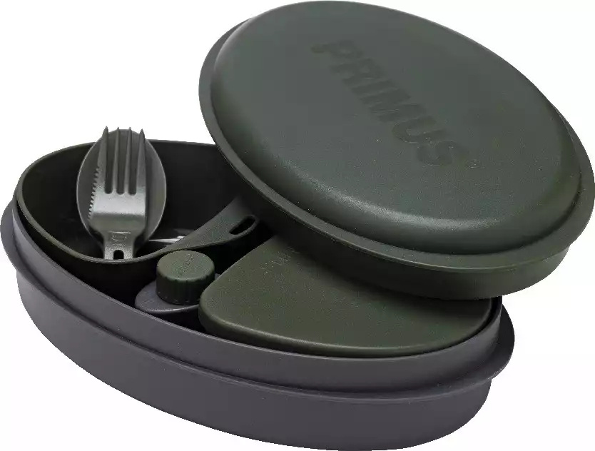 Эргономичный набор разноцветных емкостей и столовых приборов. Своеобразный легкий походный сервиз из пищевого термостойкого пластика. В транспортном положении набор очень компактный, все собирается в миску — контейнер и плотно закрывается крышкой. Пищевой пластик не имеет запаха и не искажает вкус пищи.