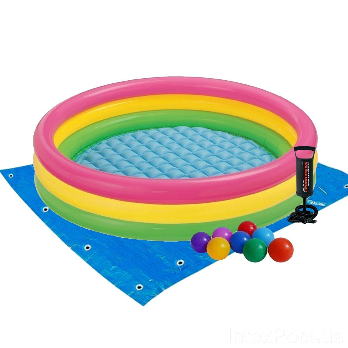 Детский надувной бассейн Intex 57422-2 «Цвета заката», 147 х 33 см, с шариками 10 шт, подстилкой, насосом (hub_i7ljkb)