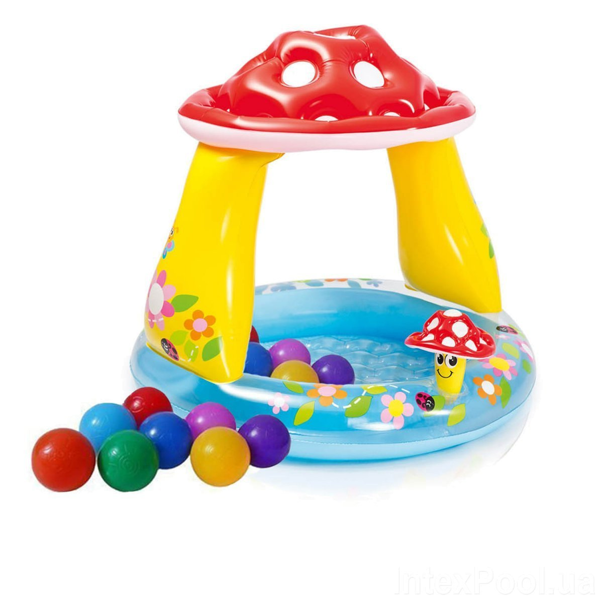 Детский надувной бассейн Intex 57114-1 «Грибочек», 102 х 89 см, с шариками 10 шт (hub_vfwiuh)