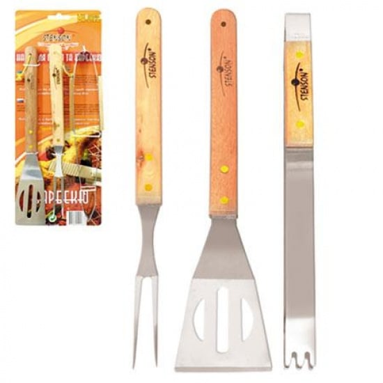 Набор для барбекю 3 предмета - лопатка, вилка, щипцы.