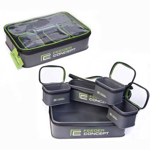 Универсальный набор емкостей с крышкой для хранения прикормки, насадки и животных компонентов. Материал EVA позволяет после рыбалки быстро и качественно вымыть емкости без необходимости просушивания. В случае дождя сохраняет животные компоненты (опарыш, мотыль, червь и др.) в сухом виде, не позволяя им расползаться. Прозрачная крышка, с двойным замком-застежкой и ручкой, облегчает идентификацию содержимого емкости. Не пропускает воду! Размеры ёмкостей: • 14 х 10 х 8.5 см — 1 шт. • 14 х 10 х 8.5 см — 1 шт. • 14 х 10 х 8.5 см — 1 шт. • 33.5 х 11 х 8.5 см — 1 шт. • 37 х 26.5 х 9.5 см — 1 шт.