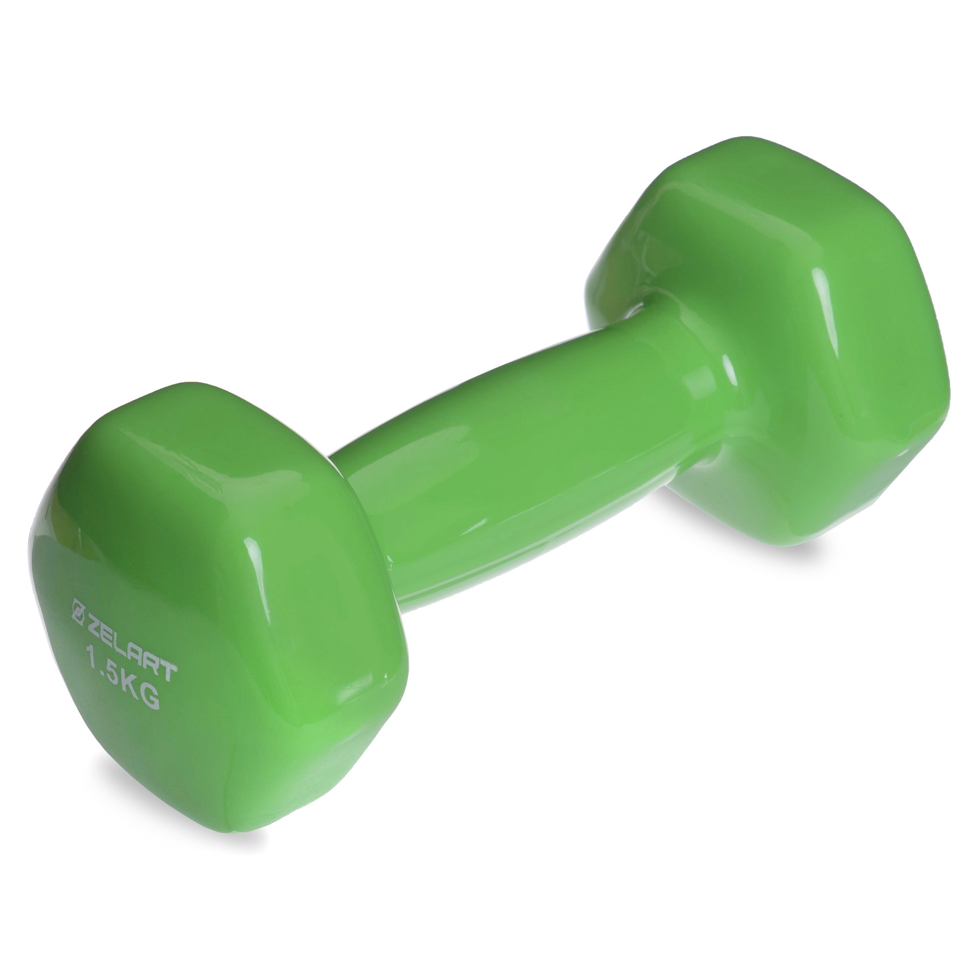 Гантели для фитнеса с виниловым покрытием Zelart TA-2777-1 5 Салатовый 1,5кг 1шт