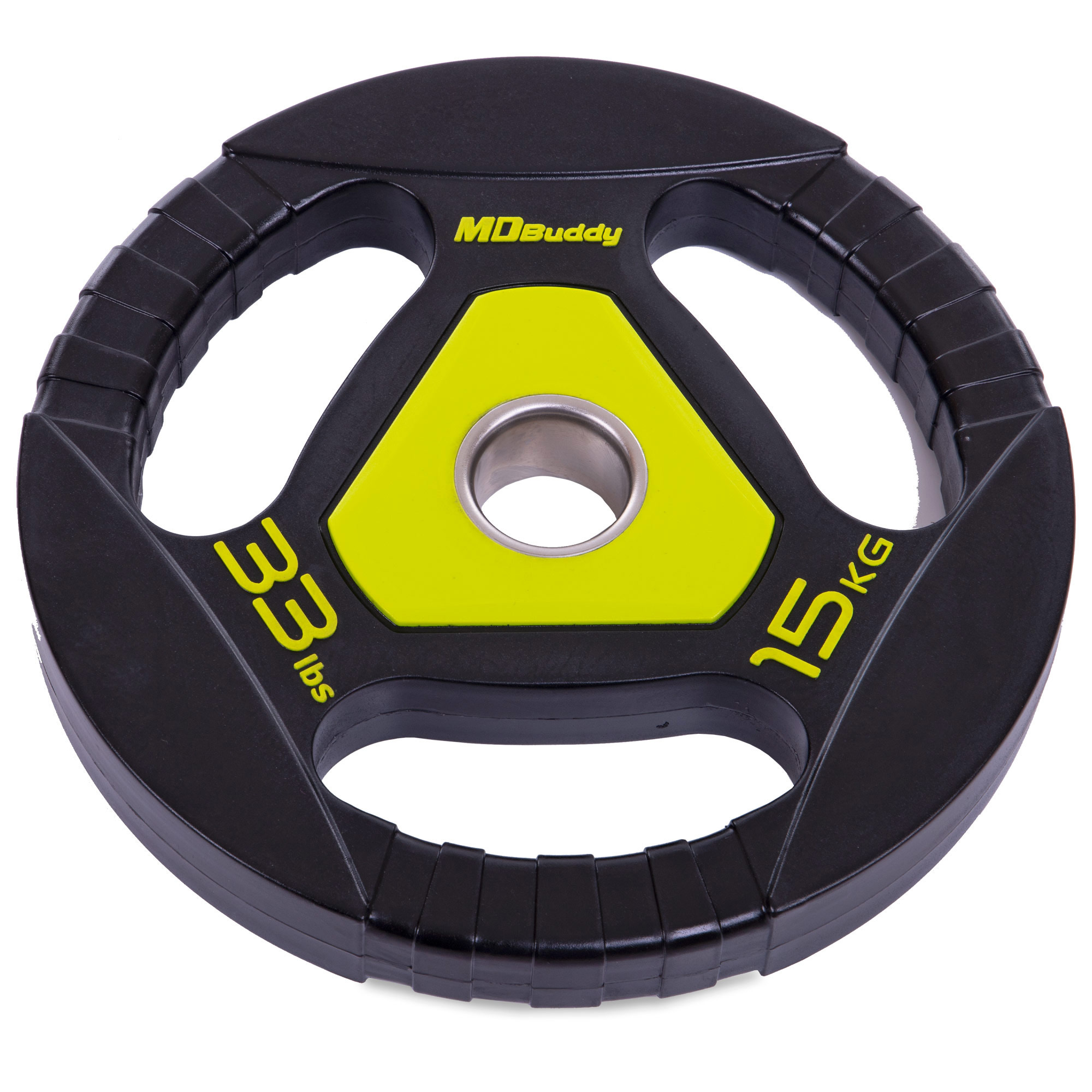 Опис Блины (диски) полиуретановые Zelart TA-2677-15 51мм 15кг Черный-салатовый