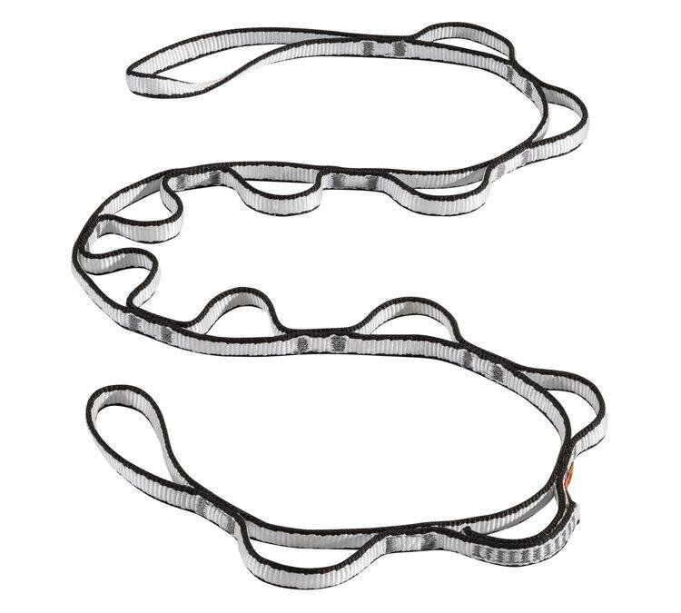 Самостраховка туристическая Black Diamond Dynex Daisy Chain 115 см из нейлона с прошитыми звеньями. Подходит для альпинизма и длинных скальных маршрутов. Может использоваться как самостраховка, как лестница или как амортизатор рывка при срыве. На концах сделаны петли - удобнее вешать не беседку.