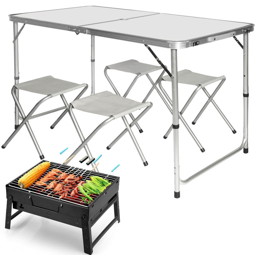 Раскладной туристический стол для пикника со стульями усиленный складной стол и 4 стула Easy Campi Зеленый+Мангал