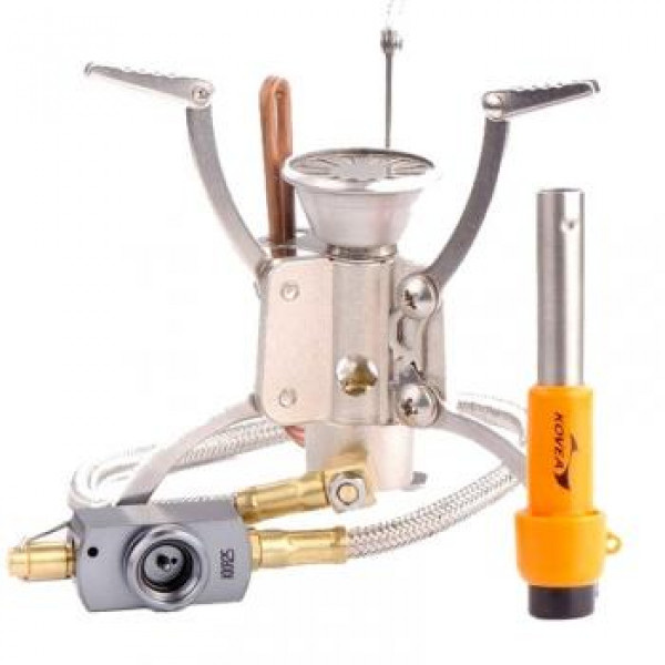 Среди всех выносной газовых горелка Kovea, модель Hose Camp-5 является наиболее легкой и компактной, благодаря небольшим размерам, сложной конструкции и отсутствии встроенный пьезоподжига. Особая форма рабочей поверхности обеспечивает мощного направления пламени, Пожалуйста Трудно задувается даже несмотря на отсутствие витрозахисту. В комплекте идет самостоятельной пьезопидпалювач KI-1007 Igniter, который, благодаря его универсальности, можно использовать с другими горелки.
