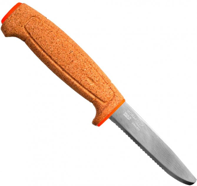 Нетонущий нож с фиксированным клинком Morakniv Floating Serrated Knife держится на поверхности воды благодаря рукоятке, которая почти полностью выполнена из пробкового дерева. Тонкий серрейторный клинок рассчитан на разрезание веревок и тканей с упрочняющими волокнами. Острие закруглено.