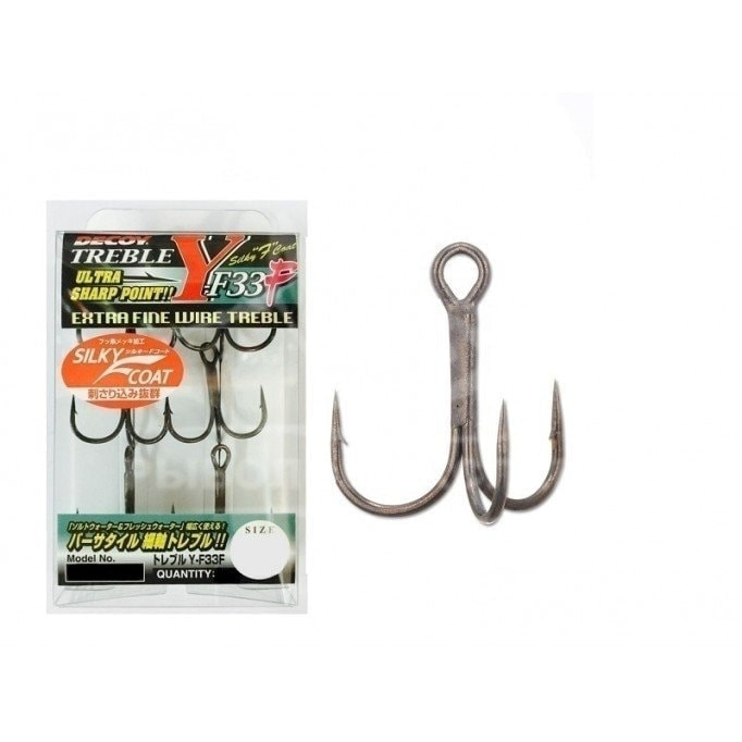 Тройник Decoy Y-F33FP имеет классическую форму, подходящую для установки на воблеры, блёсны и силиконовые приманки. Его особенностью является тефлоновое покрытие, облегчающее проникновение жала в пасть рыбы, и уменьшающее блики. Высококачественная заточка и микробородка гарантируют удачную подсечку рыбы, при этом, исключая её внезапный сход. Широкий модельный ряд позволяет оснастить качественными тройниками приманку практически любого размера.