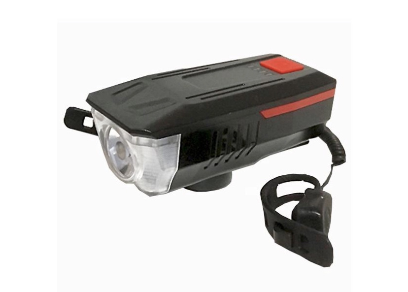 Велосипедный аккумуляторный фонарь влагостойкий с выносным звонком и индикатором заряда велофара диод T6 LY-16 Черный с красным