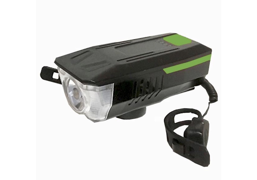 Велосипедный аккумуляторный фонарь влагостойкий с выносным звонком и индикатором заряда велофара диод T6 LY-16 Черный с зелёным